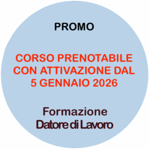 ATTENZIONE: Il corso Formazione Sicurezza Datore di Lavoro è PRENOTABILE già ora con un prezzo lancio scontato e sarà usufruibile da GENNAIO 2026. Dal 5 Gennaio 2026 verranno inviate le credenziali con l’attivazione del corso.